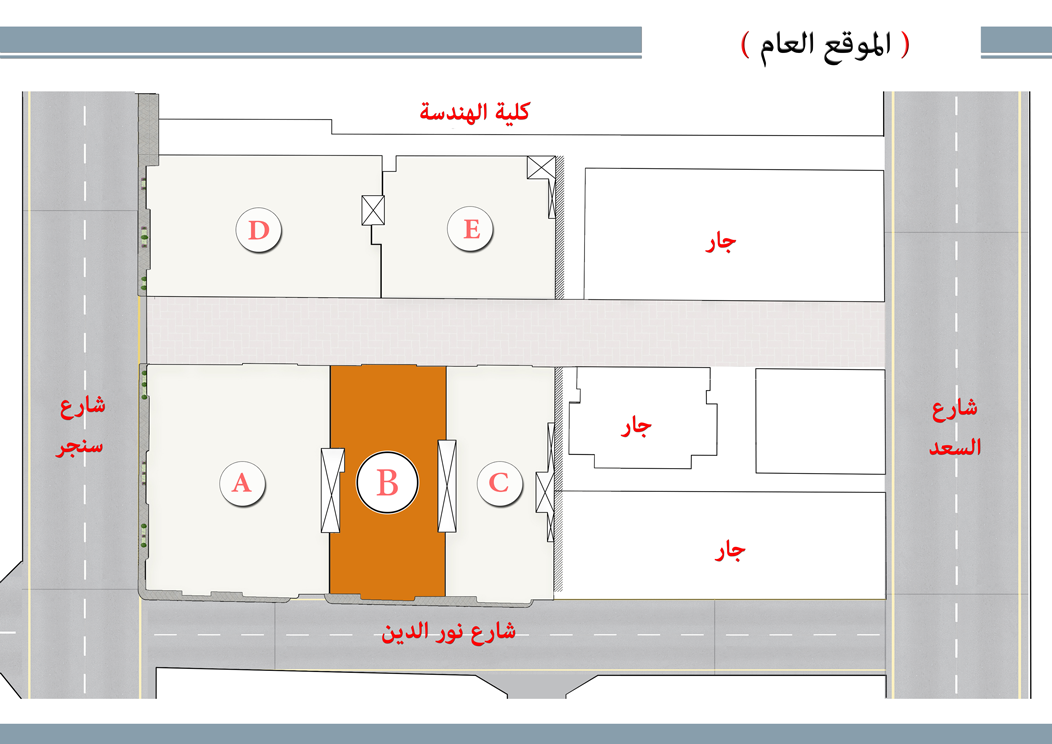The tower is on Noureddine Street The tower consists of a basement, garage, commercial ground, and 8 residential floors Floor 4 apartments The spaces start from 110 m to 152 m