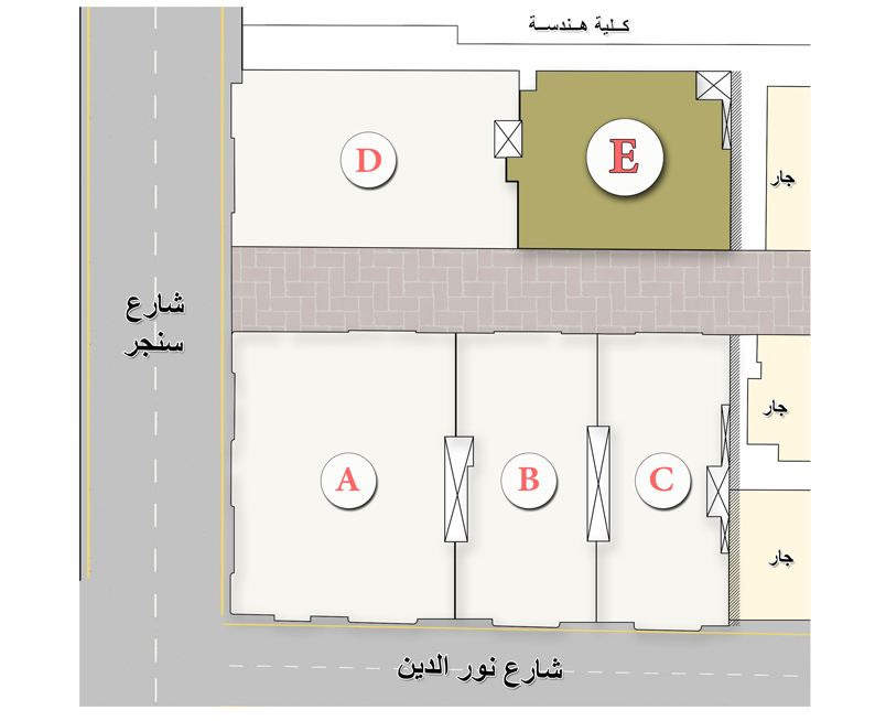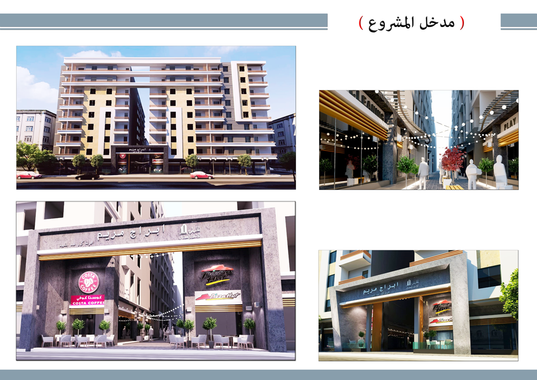 The tower is on the corner of Singer Street with Noureddine Street The tower consists of a basement, garage, commercial ground, and 8 residential floors Floor 6 apartments The spaces start from 115 m to 168 m