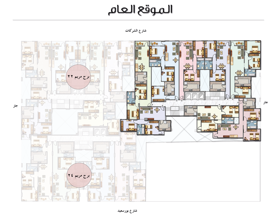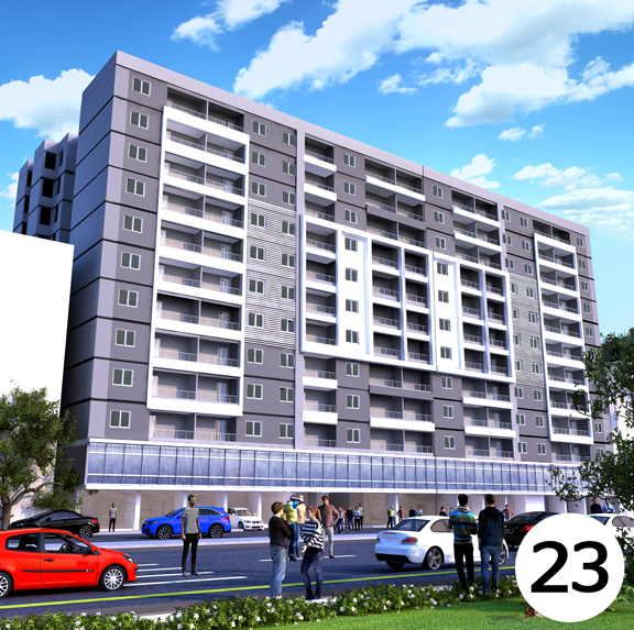 The tower overlooks Companies Street, and it consists of a garage, commercial ground, the first administrative floor, and ten residential floors. The areas in the tower range from 90 meters to 135 meters.